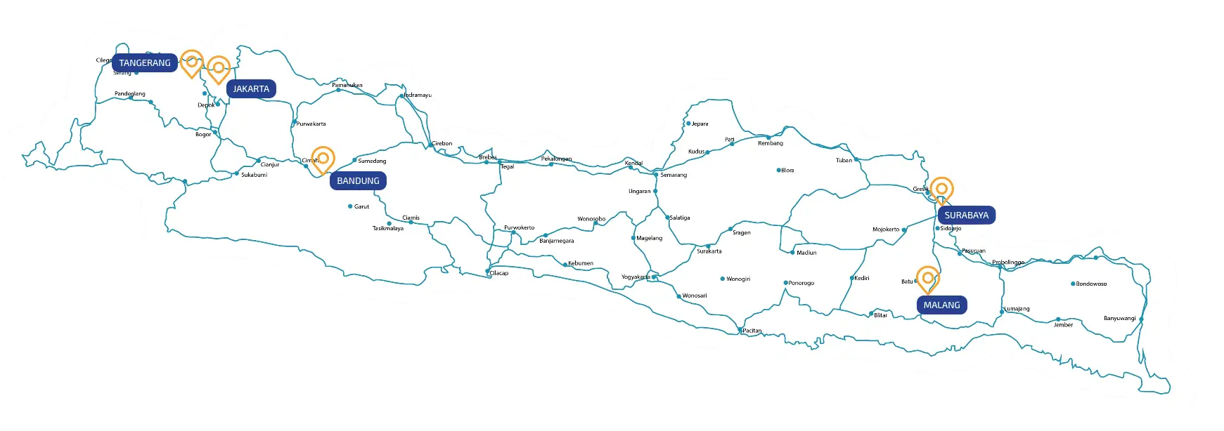 Lokasi kami tersebar di berbagai kota besar di Indonesia seperti : Jakarta, Tangerang, Bandung, Surabaya, Malang dan Sidoarjo